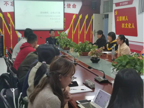 互动环节,孙教授鼓励学生开拓学术视野,以联系的思维方式,跨学科、多角度地展开文学研究,并就“考论与鉴赏角度”“中学生古诗教学”“有法与无法”等问题进行解答。会议结束,孙教授还以一首原创的《晚春》诗与在座师生共勉。整场讲座妙趣横生,孙纪文教授广博的学术视野、深厚的理论功底令与会学生受益匪浅。