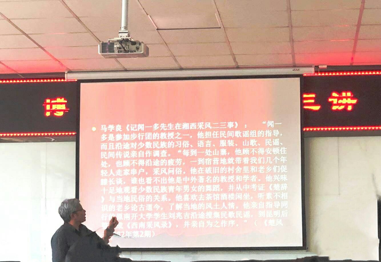 快刀不磨生黄锈,不做白脸假斯文。此次讲座不仅加深了同学们对闻一多其为人与治学的了解,同时有利于大家在时代变迁中体味爱国热忱,在历史洪流中争做民族文化的领航人。