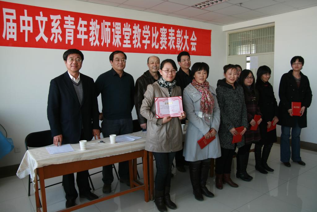 表彰会上,郎伟副院长介绍了本次比赛的举办目的以及比赛情况,并肯定了此次比赛对提高青年教师队伍的整体教学水平、教学质量,促进广大教师积极钻研业务,并主动结合“汉语言文学”专业优势,推进特色专业建设工作,继承并发扬中文系优秀教学传统的有着很重要的意义,同时,他也指出了在本次比赛中出现的一些问题,提出了要求和改进意见。