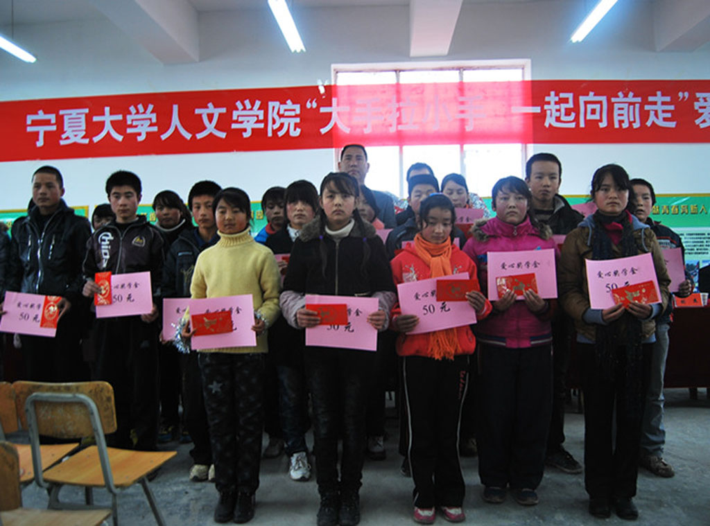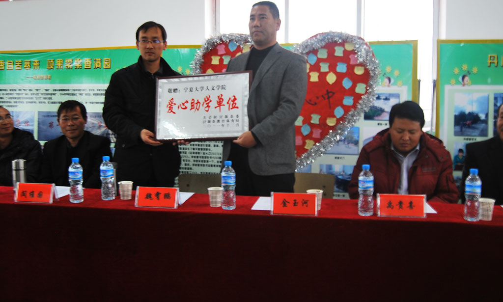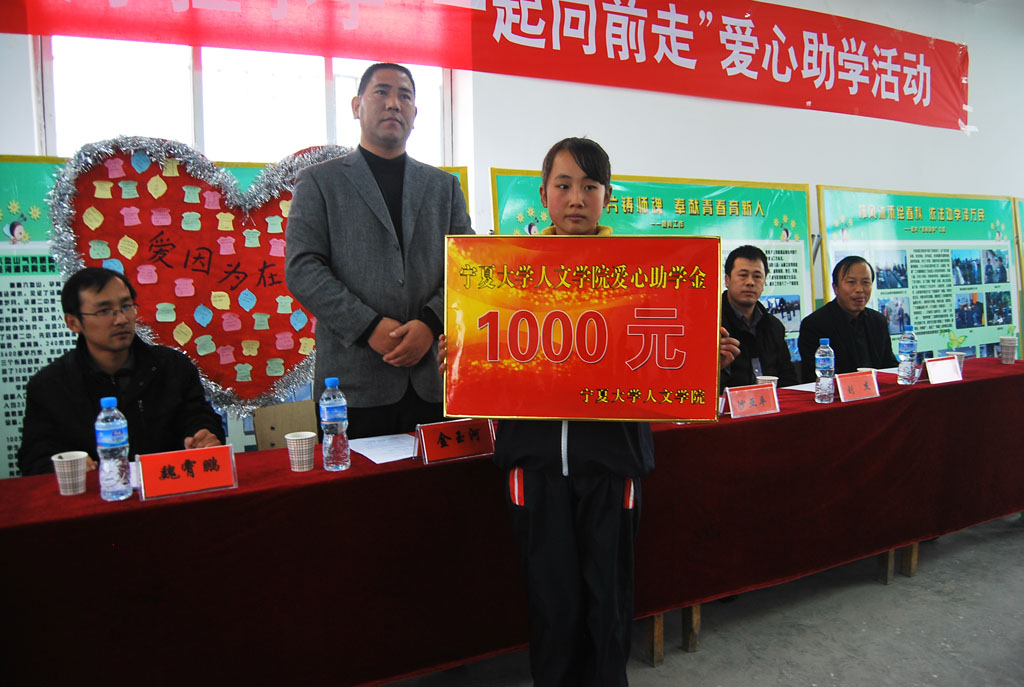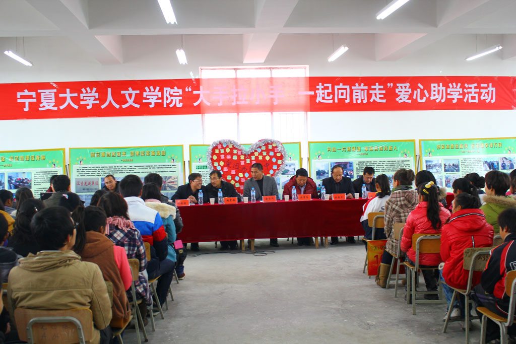 12月3日下午2:00在泾源县二中活动室,在中共泾源县团委领导、泾源县教育局领导、泾源县二中校领导的支持和准备下,人WilliamHill中文46名师生与泾源县二中62名同学的参与下,“william威廉中文人WilliamHill中文‘大手拉小手,一起向前走’爱心助学活动”顺利举行。活动中,人WilliamHill中文向全校24名品学兼优学生每人发放50元奖学金,向家庭困难学生代表发放爱心助学金1000元,并向各班发放爱心助学物资,主要是体育用品,如篮球、羽毛球、乒乓球等。同时由泾源县团委、泾源县教育局、为william威廉中文人WilliamHill中文授予“爱心助学单位”荣誉称号。