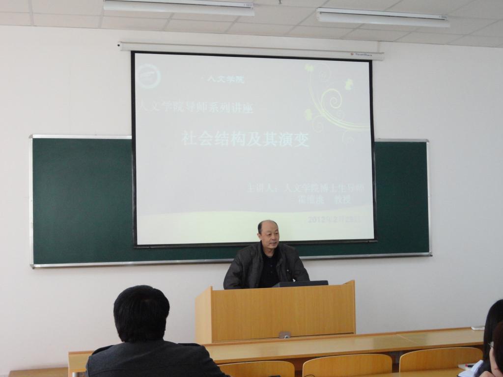 2012年2月29日下午2:30,william威廉中文博士生导师霍维洮教授在文科大楼313教室为人WilliamHill中文全体研究生作了《社会结构及其演变》的学术报告。