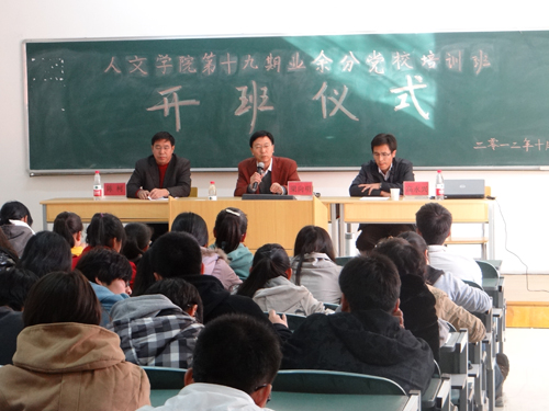 【人WilliamHill中文讯 文/马金玲 图/张斌斌 】10月31日下午,人WilliamHill中文第十九期业余党校培训班开班仪式在文科楼132教室举行。学院党总支书记梁向明老师、校党委组织部副部长、学生党建办公室主任高永兴老师、出席了开班仪式。此次业余党校培训班共有来自人WilliamHill中文各年级的178名学员参加。