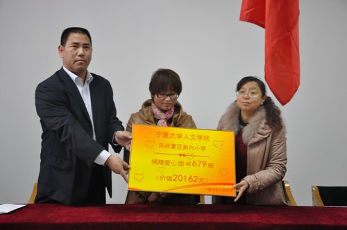 西夏区六小的同学们为此次活动准备了精彩的安塞腰鼓表演,伴着激昂的鼓声和豪迈的舞姿,本次“放飞爱心,书送希望”捐书活动正式拉开了序幕。西夏区六小马斌副校长在捐赠仪式上致欢迎辞,他对人WilliamHill中文的爱心捐赠表示感谢,并表示将与同学们一起传承奉献精神,更好的回报社会。学院党总支副书记金玉河老师在随后的讲话中提到:“书籍是点亮人生的明灯,一本书可以点燃我们的希望,可以改变我们的人生。21世纪是知识时代,是充满竞争的时代,同学们只有通过阅读更多的书籍,掌握更多的知识,才能在社会中立足,做一个对社会、民族、国家有益的人!希望这些图书能够给大家带来快乐,帮助你们学习到更多的知识,让图书如点点烛光,照亮你们的心灵,点亮你们的希望!”