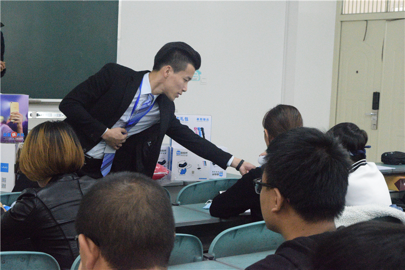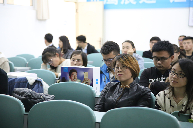活动伊始,为调动现场氛围,公司工作人员进行了简单的有关ViVO公司的相关知识的提问,对回答的同学赠送了小礼品。接着,工作人员由对现场同学恋爱观的提问引出了求职的相关问题并向同学们介绍了公司发展过程中信奉的敢于追求极致,持续创造惊喜的品牌宣言、乐享极智的品牌主张和乐趣、活力创新科技的品牌价值观,强调了公司本分做人,诚信做事的经营宗旨。同时,为了加深同学们对公司内部的了解,工作人员从年轻型、学习型的公司团队、主题招聘管理培训生的培训方式等方面进行了介绍,并就员工的生日以及健康福利等方面介绍了公司的物质文明,亦从就业人员在公司的业务、职能、技术方向和薪金层面展开了讲解。最后,由ViVO宁夏分公司人力资源部经理丁莉主持现场问答环节,同学们就公司的发展方向,员工的晋升空间和渠道等方面提出问题,丁莉结合自身经历为同学们做出了详尽的解答,对现场同学进行了鼓励与工作方向的指引。