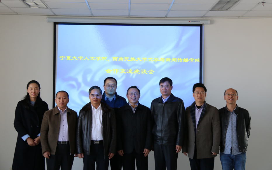 11月10日上午,我院与西南民族大学文学与新闻传播学院(以下简称文新学院)合作交流座谈会在贺兰山校区文荟楼十楼中文系会议室成功举行。文新学院院长杨荣,副院长孙纪文,邓文彬教授、岳振国副教授、团委书记王芳,院长胡玉冰、副院长王岩森、杨浣、院办主任李斌、学工办主任兼团委书记刘杰等参加了座谈会。座谈会由胡玉冰院长主持。