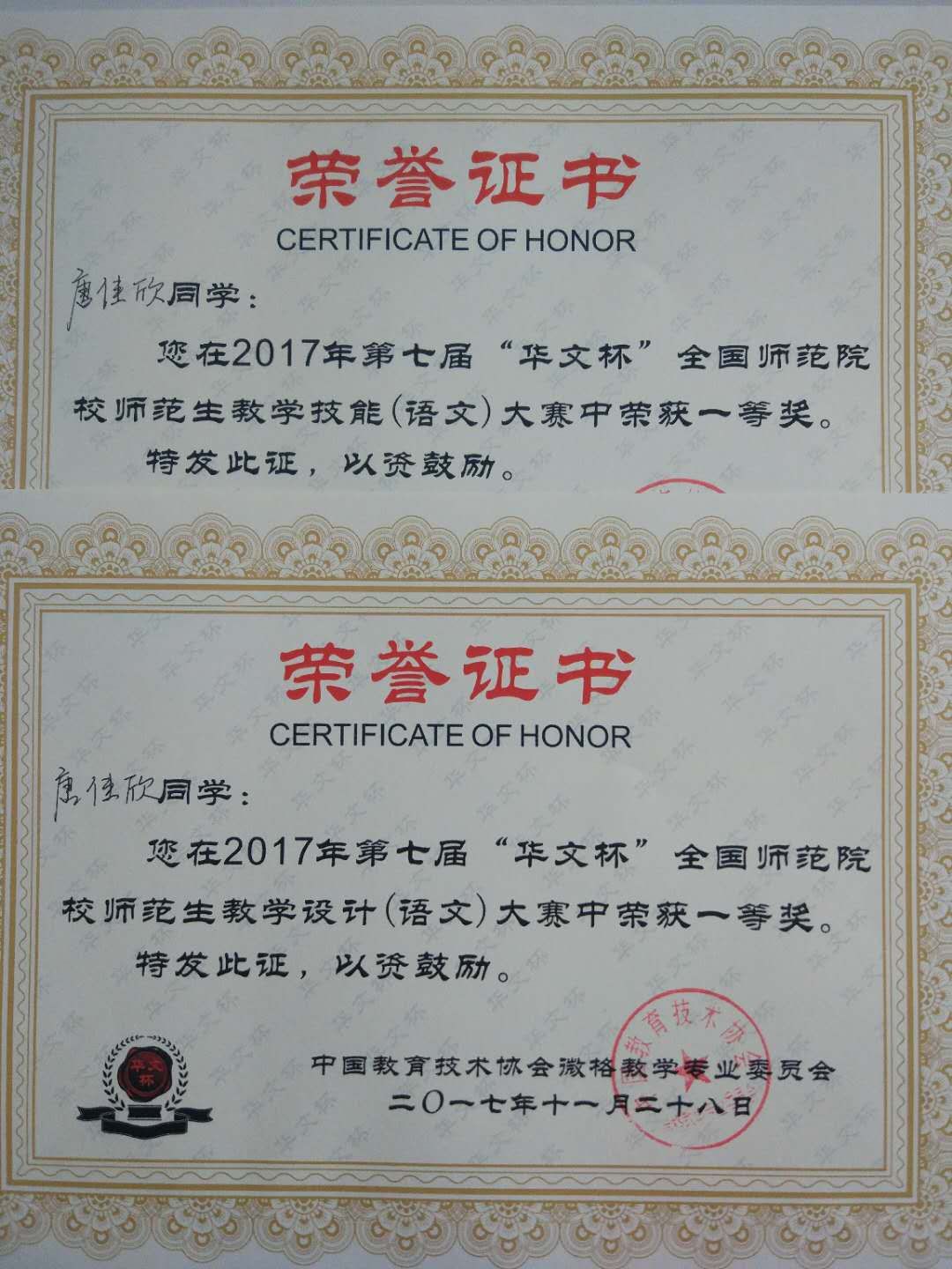 2017年11月27---28日,由中国微格教育协会主办的第七届“华文杯”全国师范生教学技能大赛总决赛在广西师范大学成功举行,来自全国35所高校的63名教师和201名学生参加了此次大赛。大赛秉承“切磋技能、交流经验、教学相长”的原则,群才毕至,强手云集。william威廉中文人WilliamHill中文4位参赛选手一路披荆斩棘,最终脱颖而出,获得了教学设计、教学技能8个一等奖的傲人成绩。