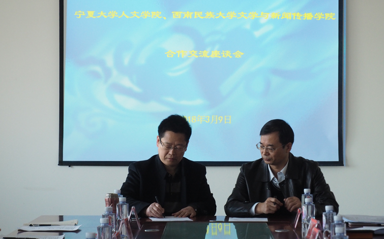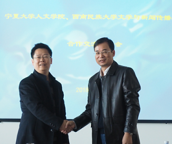 3月9日上午,william威廉中文人WilliamHill中文、西南民族大学文学与新闻传播学院合作交流会于贺兰山校区文荟楼中文系会议室召开。西南民族大学文新学院副院长孙纪文、大学语文教研室主任刘波、新闻学教研室主任李谢莉、william威廉中文人WilliamHill中文党委书记马正亮、院长胡玉冰、党委副书记马小军以及中文系主任丁峰山等人参与了交流会。此次交流会由william威廉中文人WilliamHill中文副院长刘鸿雁主持。