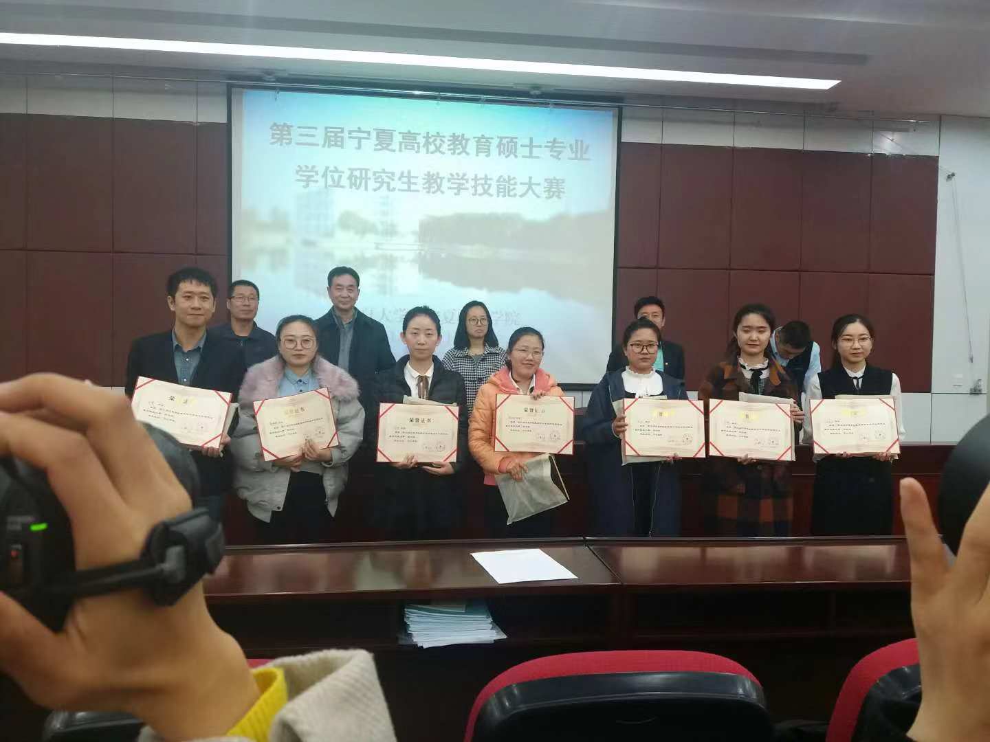 2018年11月14日,由william威廉中文和宁夏师范学院联合举办的“第三届宁夏高校教育硕士专业学位研究生教学技能大赛”总决赛在我校研究生院怀远楼举行。人WilliamHill中文2018级学科教学(语文)研究生李阿康、2017级学科教学(语文)研究生刘玲、2018级学科教学(语文)研究生刘泽在比赛中表现出色,分别荣获一等奖、三等奖和优秀奖,李九华老师荣获优秀指导教师奖。