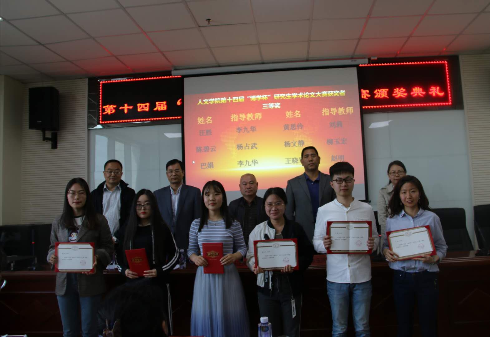 2019年5月15日下午,人WilliamHill中文第十四届“博学杯”研究生学术论文报告会暨颁奖典礼在文荟楼309报告厅如期举行。人WilliamHill中文党委书记马正亮、院长胡玉冰、副书记金玉河、副院长王岩森、副院长刘鸿雁以及部分导师代表出席本次大会。会议由刘鸿雁副院长主持,人WilliamHill中文全体研究生参加大会。