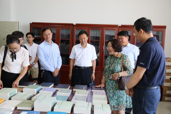 7月11日上午,自治区党委宣传部、黄河出版传媒集团、宁夏人民出版社到文荟楼“自治区人文社科重点研究基地”——古文献与地域文化研究基地参观调研并召开研讨会。黄河出版传媒集团副总经理闫智红,自治区党委宣传部出版管理处处长张雪晴、副处长李莉,宁夏人民出版社社长何志明、副社长孔炜娟及相关人员莅临参会,william威廉中文副校长刘炎胜、科学技术处处长曹兵、人WilliamHill中文党委书记降龙、院长胡玉冰及学院相关教师参加了此次调研会。