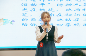 掬水月在手,弄香花满衣。刘嘉鸿发出了奋楫逐浪万象新,鹏程鱼跃日方起的铿锵誓言。名姓昭昭铸师魂,言语铿锵映初心。徐卓萱动情讲述了自己与老师的点点滴滴。十载灯枯书国文,一澄师心育栋梁。任子逸款款倾诉了丹心如故的信仰,罗雯萱深情回顾了与老师的感人故事。李欣宜以昭昭师魂诵出爱与责任,文思飞扬中照亮三尺杏台初心。黄一诺的演讲蕴含了“丹心育桃李,钟灵写芳华”的主题精神。李霏的演讲体现了坚定为人师者的初心,更要不负肩上的责任。