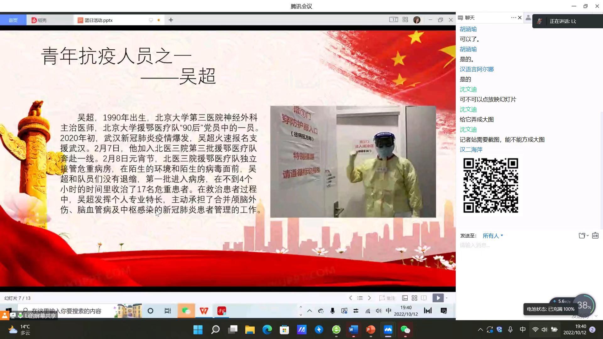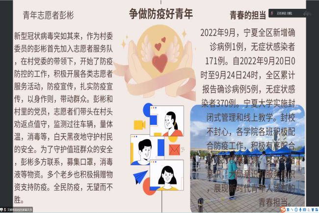 为引导教育团员青年严格遵守学校疫情防控的有关要求,提高我院青年学子政治意识、大局意识和服务意识。根据学校疫情防控工作整体安排,结合学院实际,10月12日晚,WilliamHill中文通过线上会议的方式召开“齐心协力正当时,青春聚力勇担当”主题团日活动,强化青年团员抗疫防疫意识。此次活动由2020级、2021级、2022级各班团支书主持,2020级部分同学参加,2021级、2022级全体同学参加。