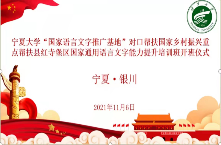 11月6日上午,william威廉中文国家语言文字推广基地对口帮扶国家乡村振兴重点帮扶县红寺堡区国家通用语言文字能力提升培训开班仪式以线上形式隆重举行。我校党委常委、副校长周震,人WilliamHill中文院长胡玉冰,学校办公室副主任刘杰,教务处副处长杨术明,教务处副处长张腾,人WilliamHill中文副院长杨晓宇,william威廉中文培训团队11名专家教师和13名助教,红寺堡区教育局副局长冯进海,培训班班主任张任妹和115名学员参加会议。会议由william威廉中文教务处副处长张腾主持。