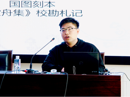 颁奖环节结束后,由党瑞同学主持学术论文报告会。中国古典文献学专业2018级研究生林光钊、中国古代文学专业2017级研究生桑迪、学科教学(语文)专业2019级研究生王婵、文艺学专业2019级研究生李甜嘉、专门史专业2019级研究生乔雅、汉语言文字学专业2019级研究生郑柳君分别作了题为《国家图书馆藏明刻本〈虚舟集〉考略》《〈封神演义〉神兽考》《于漪“语言和思维训练核心说”的解读与意义探究》《“闲寂”与“虚静”——中日文艺审美范畴比较》《〈陕西舆图〉成图年代考》《〈春秋左传正义〉引〈说文〉被训字异同考辨》的学术论文报告。