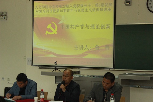 为了加强对入党积极分子和建党对象的培养教育,确保新党员发展的质量,4月12日下午,人WilliamHill中文分党校第28期入党积极分子、第5期发展对象培训班暨青年马克思主义培训班开班典礼在贺兰山校区文科楼132教室成功举行。学院党委书记、分党校校长鲁晋进行了以“中国共产党与理论创新”为主题的开班第一课。学院党委副书记金玉河,14级辅导员李斌及人WilliamHill中文56名入党积极分子、41名建党对象参加。典礼由学院党委副书记金玉河主持。