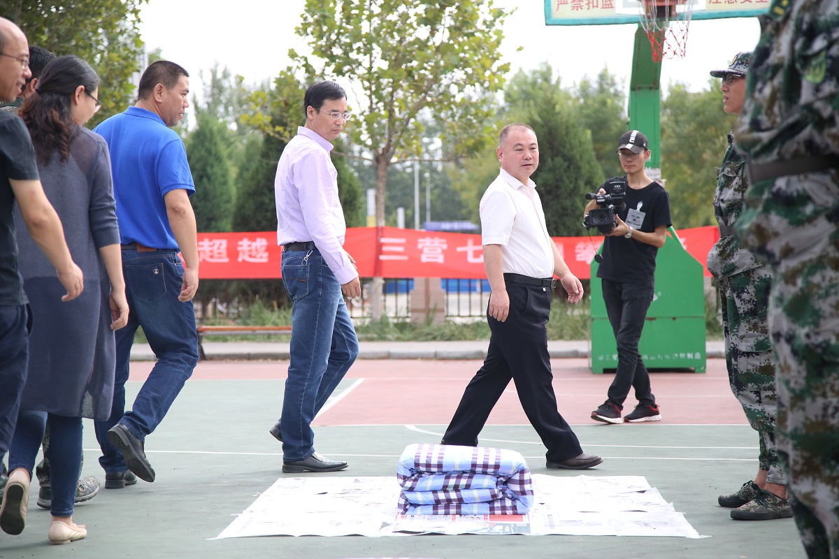 军歌嘹亮,唱响青春;正步雄风,英姿飒爽!限时15分钟的军被折叠充分展示了军被折叠方队娴熟的折叠技能,面对着整整齐齐的“豆腐块”,院领导们表达了高度的赞扬。队列会操口号响亮,整齐划一,赢得了领导们的充分肯定。一腔热血,齐诉人文情;一曲高歌,共唱《映山红》!随着前奏缓缓响起,清丽悠扬的独唱直击心间,随后的合唱低沉却又不失婉转,与独唱相互交织,回荡在训练场的上空,久不平息。之后,学院领导向军训教官和参训学生赠送慰问品。