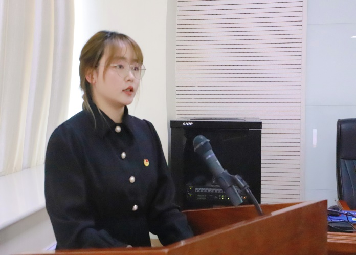 2019级汉语言文学(文秘方向)1班的杨慧同学作为发展对象代表发言。她认为,青年一代要明确自己作为新时代青年人的责任和担当,并呼吁全体同学磨砺党性修养,不负青春韶华。