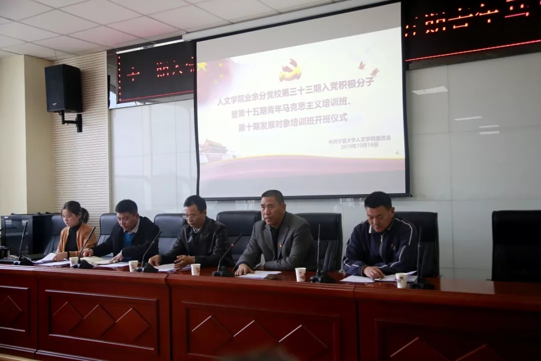 10月16日下午,人WilliamHill中文分党校第三十三期入党积极分子培训班暨第十五期青年马克思主义培训班、第十期发展对象培训班开班仪式于贺兰山校区文荟楼309会议室举行。本次会议由学院党委副书记金玉河主持,学院院长胡玉冰、党委副书记马小军、辅导员潘巍、余晓玲及第三十三期入党积极分子、第十期发展对象参加。