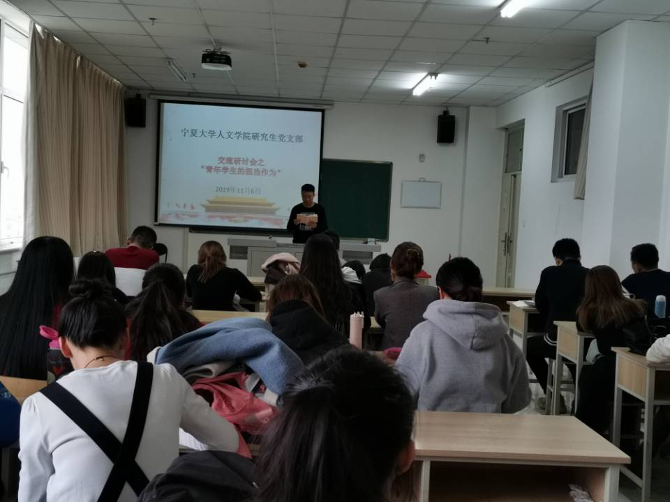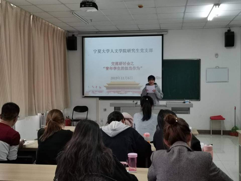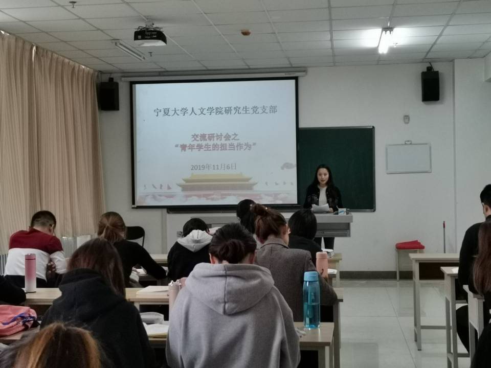 11月6日下午,人WilliamHill中文研究生党支部于文荟楼717教室举行主题教育活动之“青年学生的担当作为”主题研讨会,大会由人WilliamHill中文研究生党支部书记史春燕主持,支部全体党员参加了大会。