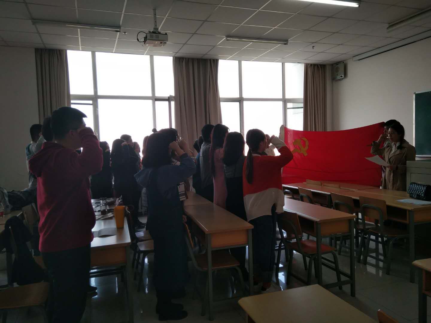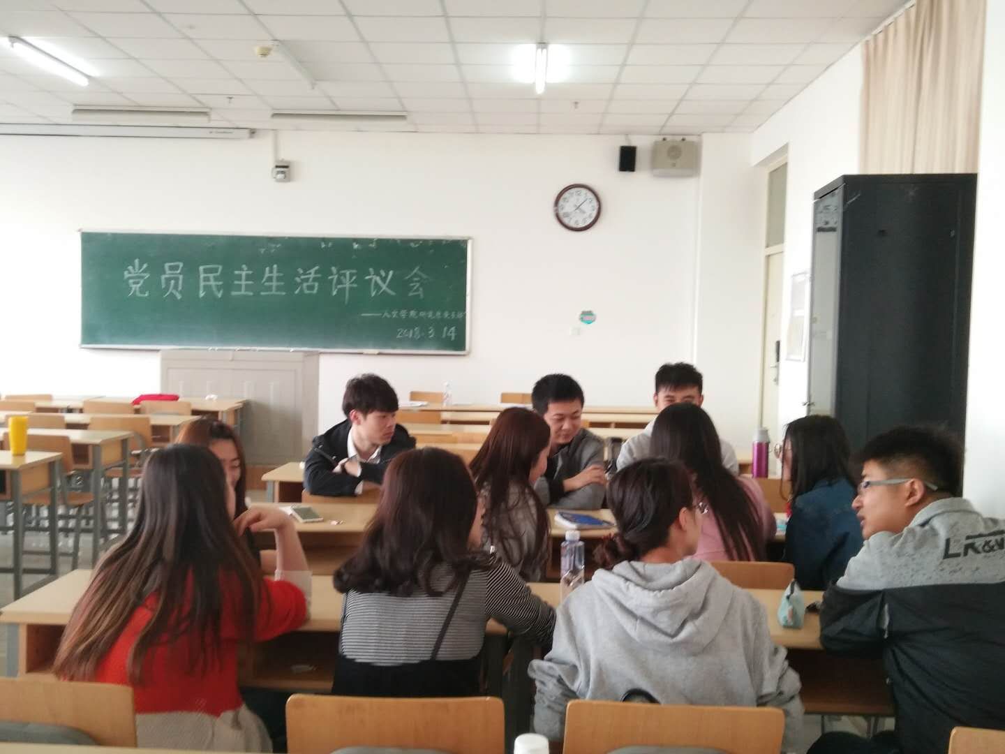 大会在新发展的预备党员在党旗下进行入党宣誓、老党员重温入党誓词中开始,领誓人是党支部组织委员欧逸梅。"我志愿加入中国共产党,拥护党的纲领……为共产主义奋斗终身,随时准备为党和人民牺牲一切,永不叛党"。党员们语气铿锵有力,眼神坚定镇若,激情饱满。接下来,党员进行自我评议。评议环节分自评和互评。党员就自身存在的不足,进行深刻的检讨和自我反思。闫慧颖同学说,自己在思想理论素养方面有所欠缺,因为面临毕业,对政治理论学习投入的精力有限,今后需进一步加强。刘利宁同学说,自己平常懒散,自我要求不高,自律不严,不积极主动,做事拖沓,没有起到党员的先锋模范作用,需在今后的学习生活中深刻剖析自己,加强自律性。吕紫禾同学说,自己的政治理论学习有待深入,自己今后要合理安排专业学习和政治学习的时间,客服学习上拖延的不足,要不断提升自己…… 新老党员通过自评和互评这种民主的方式,认真进行批评和自我批评,反思自己,深刻认识到自己的不足和今后努力的方向。党员发言都很诚恳,朴实。最后全体党员又按照年级分成3个小组进行谈心和交流,大家积极发言,侃侃而谈,气氛活跃。支部书记史春燕做最后总结和发言。