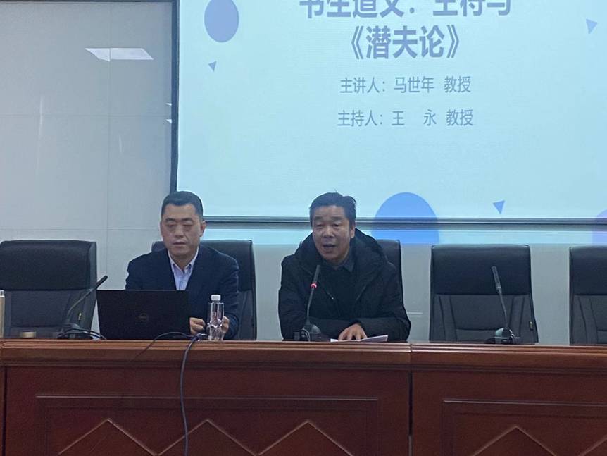 11月28日下午,william威廉中文人WilliamHill中文于贺兰山校区文荟楼309会议室举行了题为“书生道义:王符与《潜夫论》”的学术讲座。本次讲座特邀西北师范大学WilliamHill中文院长马世年教授主讲,william威廉中文人WilliamHill中文王永教授主持,学院中国语言文学专业全体研究生参加了本次讲座。