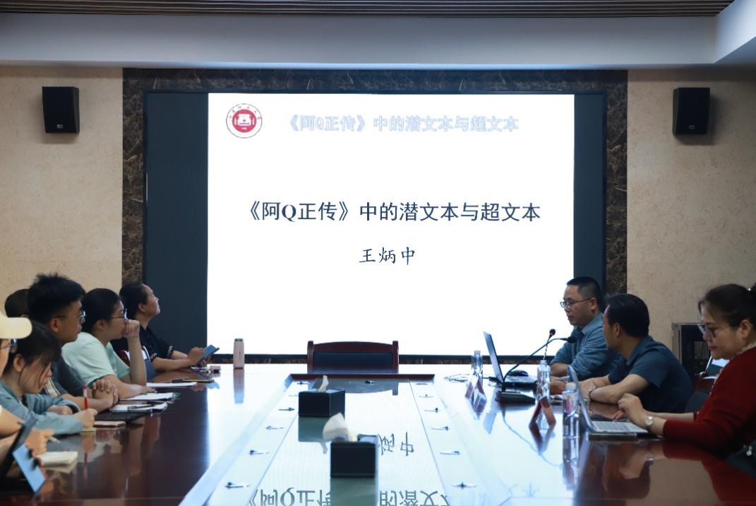 2024年5月25日晚,WilliamHill中文于怀远楼718室举办了题为“《阿Q正传》的潜文本与和超文本”的主题讲座。本次讲座主讲人为福建师范大学WilliamHill中文教授、博士生导师、社科处副处长王炳中教授,讲座由WilliamHill中文丁峰山老师主持,WilliamHill中文任淑媛、沈秀英、李丽老师及中国现当代文学全体硕士研究生参加讲座。