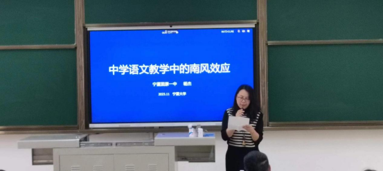 为提升学科教学(语文)专业硕士研究生专业素养和教研能力,2023年11月1日下午,“语文名师大讲堂系列讲座”在怀远一教121教室举行,受WilliamHill中文学科(教学)语文硕士点邀请,中国教育学会中语会“魏书生教育思想研究会”核心成员,宁夏师范学院WilliamHill中文研究生导师,固原市语文学科带头人杨杰老师以“中学语文教学中的‘南风效应’”为主题与师生分享教学经验,此次讲座由刘鸿雁教授主持,WilliamHill中文学科教学(语文)专业全体学生与会。