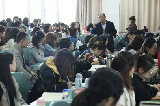 马老师首先向大家介绍了“走心语文”的定义,他提出“走心语文”是一种以情感体验为主要路径实施语文教学以使学生在学习过程中产生浓厚的兴趣,发生热爱的感情,出现专注投入的状态从而进行语言构建的语文教学理念。这种理念的内核一为情感体验,二为语言建构。接着,马老师以他的三个实验案例——“走心读写”、“课内名著阅读”、“充分言说的语文课堂”来阐述他的“走心语文”教学的实践和效果。使大家真切地体味到“走心”就是一种全神贯注的投入,一种忘情忘我的痴迷,一种深入灵魂的热爱。“走心语文”是马老师三十多年来用心经营的职业形态,潜心研发的课程章法,倾心浇注的事业成果。