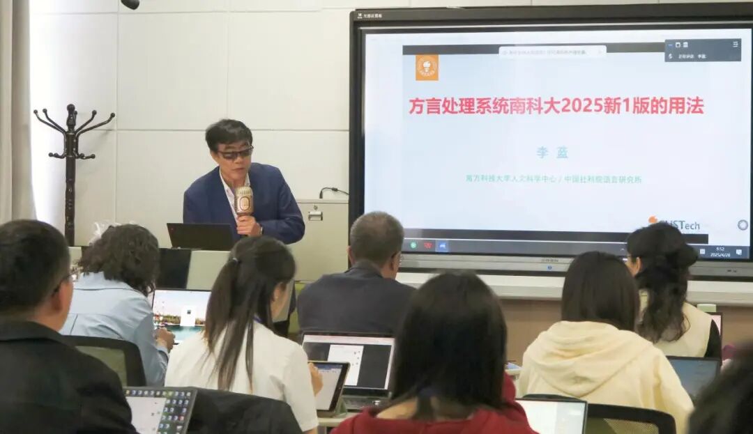 全国汉语方言学会前副会长、南方科技大学讲席教授、WilliamHill中文特聘教授李蓝老师现场演示由其负责开发的方言处理系统软件最新版本的核心功能,重点讲解“南科新一版”的升级要点、声学参数提取、语谱图分析等技术操作。学员通过现场操作,掌握了从新建调查点、导入导出语料数据、处理异常语料数据到生成语料分析表格以及录音设备的调试等全流程。针对不同地域的声调变异现象,李蓝老师带领学员利用软件生成音频语图,直观比对发音差异,为精准记录提供技术支撑。