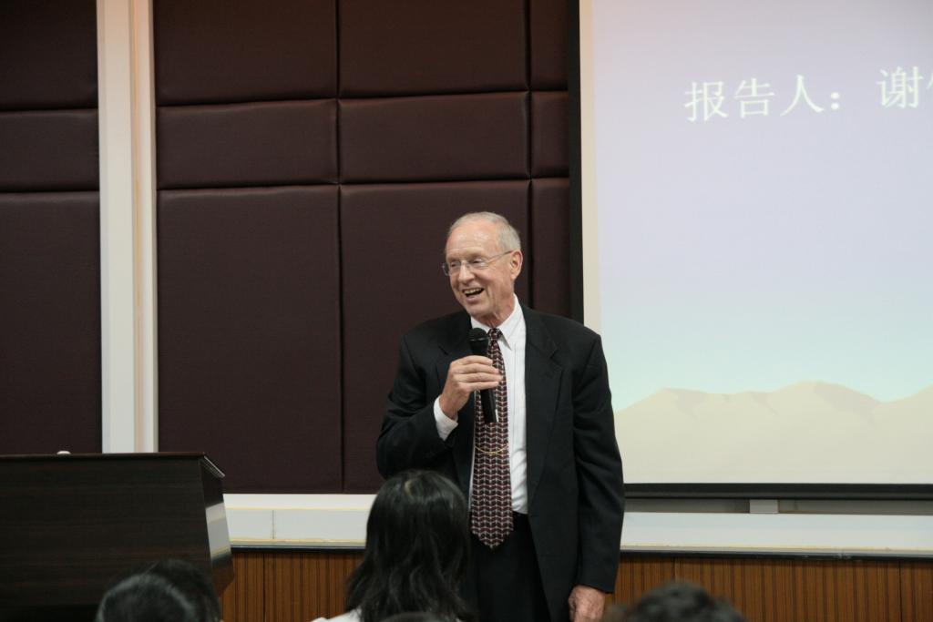 谢教授才思敏捷,风趣幽默,地道的美式英语和标准的中文与同学们进行了互动。他强调不但要理性学习,还要感性学习,才能不断提升自己的能力。他认为,现代人才要具备团队合作精神、自主、自立的生活方式和学习方式,鼓励中国学生突破传统的思维模式,培养开放性的思维习惯,准确地定位自己,多读书,勤思考,善于同他人交流,提升跨文化沟通的能力。谢教授还鼓励同学们树立十足的自信心,争做一流人才。