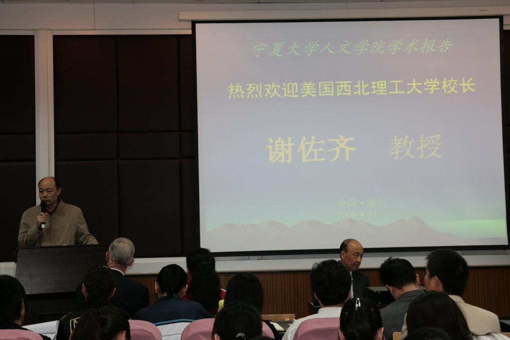 2008年4月8日下午,正在我校进学术访问的美国西北理工大学校长谢佐齐先生(Dr.George Hsieh)应邀为人WilliamHill中文研究生做了《二十一世纪外向型人才需求及有效培养方法》学术讲座。