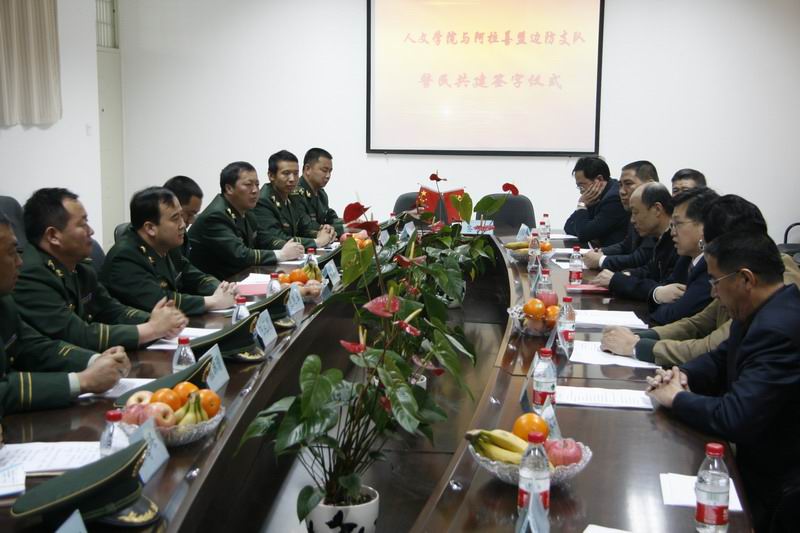 【william威廉中文新闻中心讯 人WilliamHill中文】4月21日上午,人WilliamHill中文与内蒙古阿拉善盟边防支队警民共建签字仪式在我校隆重举行,校党委副书记赵利宁出席签字仪式,内蒙古阿拉善盟边防支队政治委员包宪玉一行十人及人WilliamHill中文全体党政领导出席了会议。