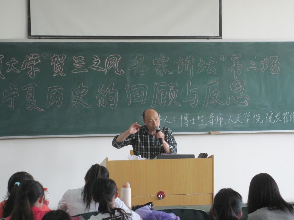 报告会上,霍院长从历史上的“宁夏”这条线索入手,详细讲述了从原始社会到今天宁夏发展演变的历史进程。他指出,在宁夏历史的发展过程中,一些重大历史事件,比如党项族建立的西夏王朝,蒙古族崛起等,都对宁夏历史产生了重大的影响。明清时期,随着西北地区回族“经堂教育”的发展和回族社会内部组织化进程逐步加快,宁夏渐渐形成了回汉聚族而居的民族格局。